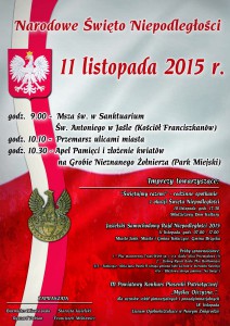 Starosta Jasielski Franciszek Miśkowicz oraz Burmistrz Miasta Jasła Ryszard Pabian zapraszają do udziału w powiatowych obchodach Narodowego Święta Niepodległości, które odbędą się w dniu 11 listopada br. w Sanktuarium Św. Antoniego w Jaśle oraz przy Grobie Nieznanego Żołnierza w Parku Miejskim w Jaśle.
