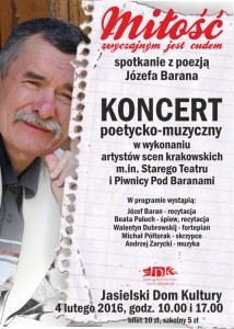 Jasielski Dom Kultury zaprasza na koncert poetycko – muzyczny w wykonaniu artystów scen krakowskich, który odbędzie się 4 lutego br.