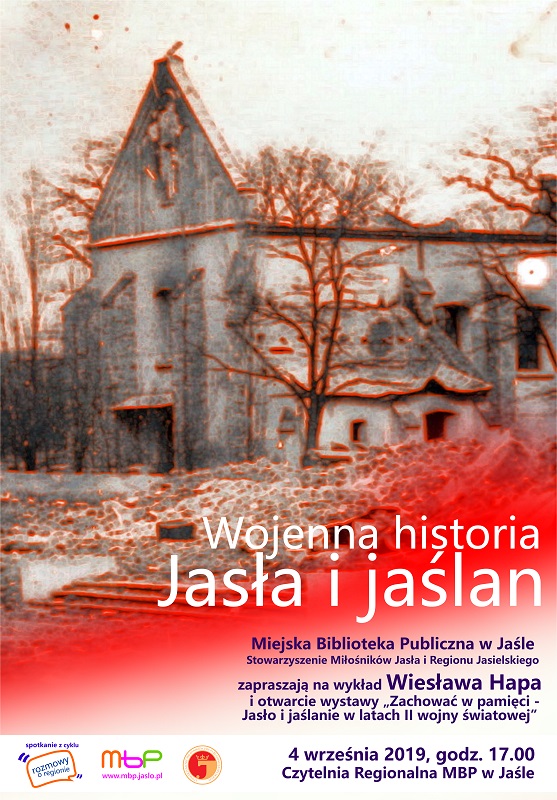Miejska Biblioteka Publiczna w Jaśle i Stowarzyszenie Miłośników Jasła i Regionu Jasielskiego zapraszają na prelekcję Wiesława Hapa „Wojenna historia Jasła i jaślan” połączoną z otwarciem wystawy „Zachować w pamięci – Jasło i jaślanie w latach II wojny światowej”.
