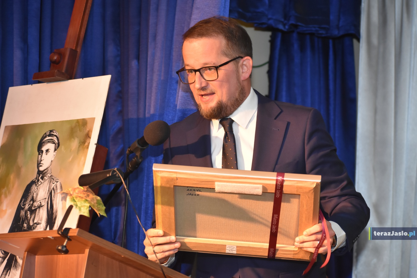 Zastępca burmistrza miasta Jasła dr Przemysław Baciak przekazał list gratulacyjny oraz obraz przedstawiający krajobraz miasta – położony u zbiegu ulic 3 Maja i Staszica skwer 600-lecia nadania praw miejskich Jasłu.