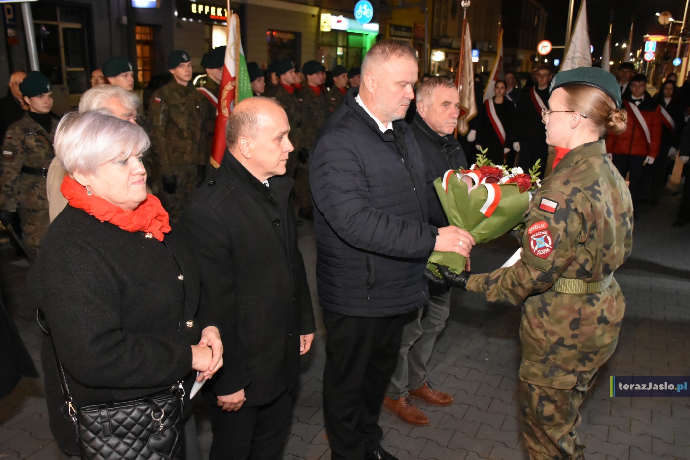 Parlamentarzyści – Senator Rzeczypospolitej Polskiej Alicja Zając i poseł na Sejm RP Maria Kurowska oraz delegacje władz samorządowych – miasta Jasła i powiatu jasielskiego, służb mundurowych, szkół ponadpodstawowych, instytucji publicznych, a także działacze NSZZ „Solidarność” oraz Stowarzyszenia „Solidarni w Jaśle”, złożyli wiązanki kwiatów oraz znicze pamięci.