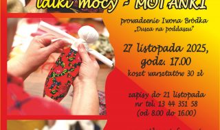 Znana już sympatykom JDK rękodzielniczka wprowadzi uczestników warsztatów (tylko osoby dorosłe) w świat tradycyjnych, ręcznie wykonywanych lalek – symboli dobrej energii i ochrony. To doskonała okazja, by własnoręcznie stworzyć unikalną motankę i poznać jej znaczenie w kulturze ludowej.