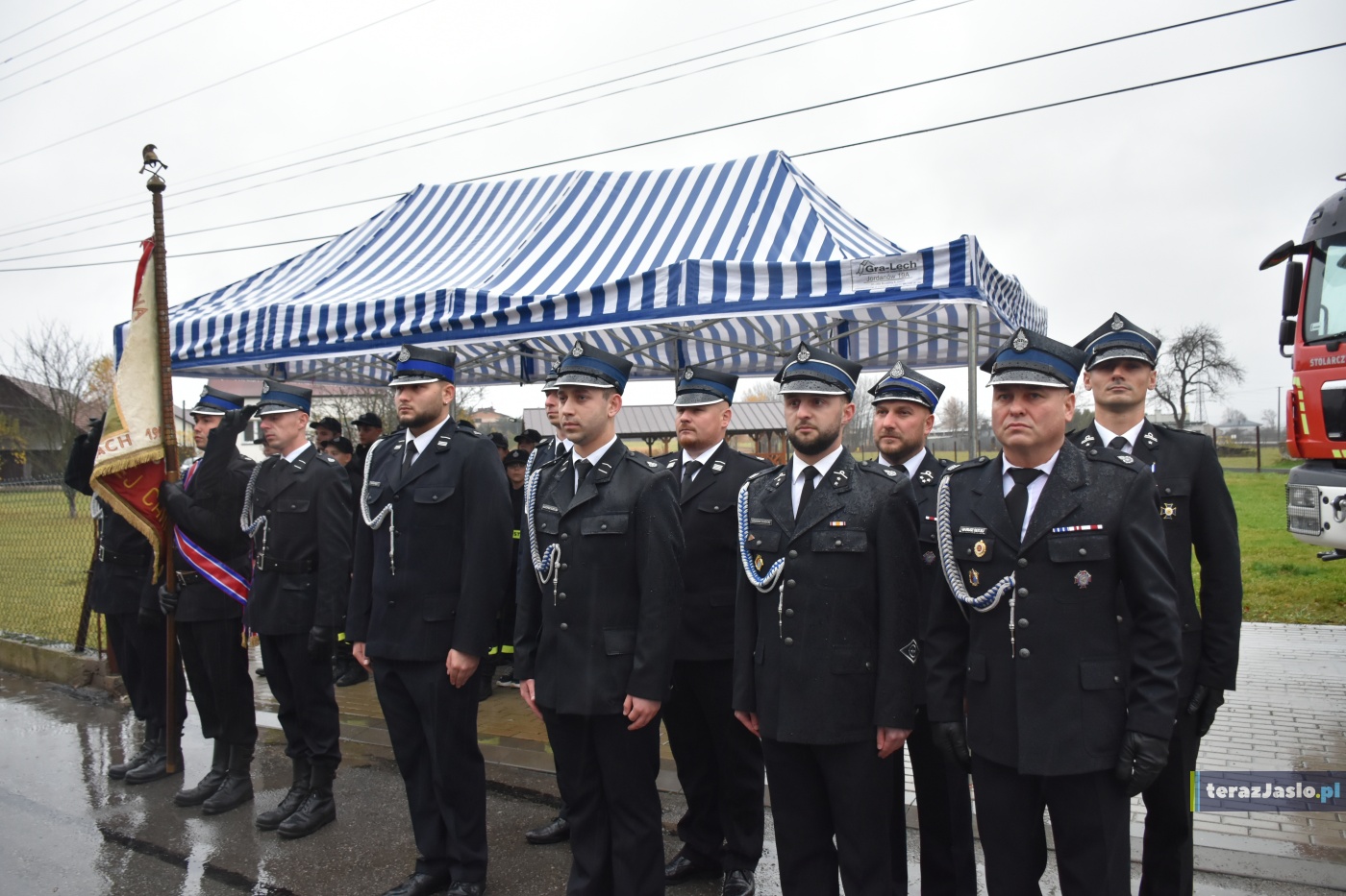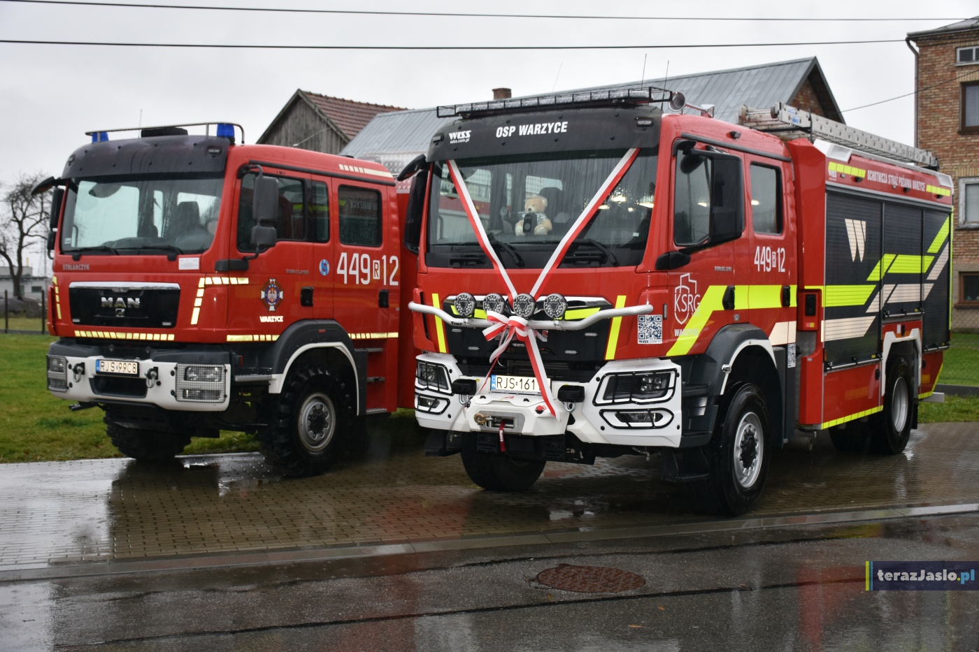 W poniedziałkowe popołudnie, 3 listopada, miała miejsce uroczysta zbiórka z okazji włączenia fabrycznie nowego średniego samochodu ratowniczo-gaśniczego marki MAN z napędem 4×4 do podziału bojowego Ochotniczej Straży Pożarnej w Warzycach. Zdjęcia: terazJaslo.pl / Damian Palar.