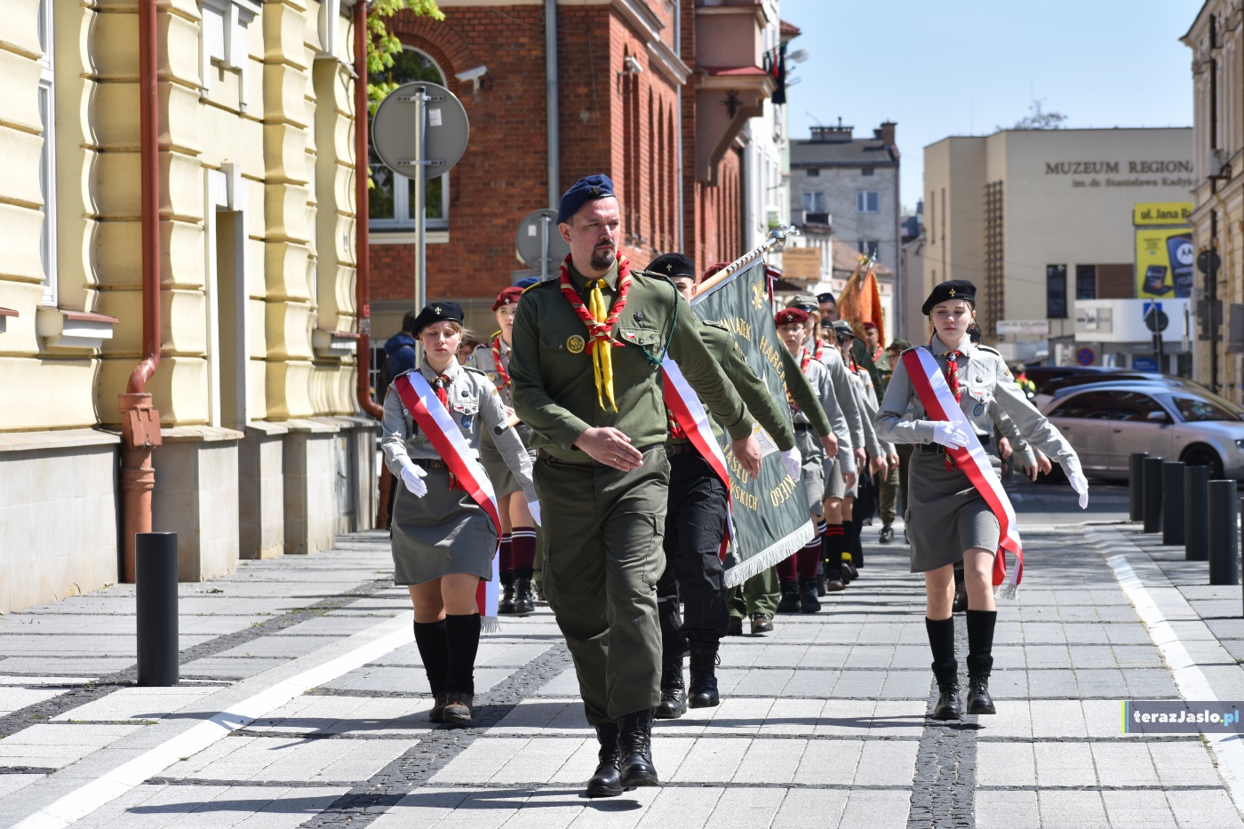 Historycznym momentem dzisiejszego wydarzenia było wręczenie nowego sztandaru dla Związku Harcerstwa Polskiego w Jaśle. Jego fundator, przewodniczący Rady Miejskiej Jasła odczytał akt fundacyjny: „Ja Marcin Węgrzyn, działając w poczuciu odpowiedzialności za wychowanie młodego pokolenia w duchu wartości harcerskiej służby, braterstwa i miłości do Ojczyzny, niniejszym aktem uroczyście funduję sztandar dla Hufca ZHP w Jaśle. Sztandar ten stanowić będzie najwyższy symbol jedności, tradycji oraz ideałów, którym wierni pozostają instruktorzy, harcerze i zuchy naszej jasielskiej ziemi. Niech pod jego symbolem dojrzewa w Was obowiązek pracy nad sobą oraz pokora w niesieniu pomocy bliźnim. Przekazuję go obecnym i przyszłym pokoleniom jako znak tożsamości, honoru i ciągłości ruchu harcerskiego. Niech towarzyszy Wam w chwilach uroczystych i codziennej służby, będąc źródeł dumy i niezłomnego zobowiązania. Niech ten sztandar będzie żywym drogowskazem, by każdego dnia zostawiać świat trochę lepszym niż go zastaliście, czerpiąc wzór od twórcy skautingu Roberta Boden-Powella oraz bohaterskiej rodziny Madejewskich. Wierzę, że ten znak będzie Was jednoczył i prowadził przez lata godnej służby Polsce. Jasło, dnia 25 kwietnia 2026 roku. Fundator sztandaru Marcin Węgrzyn.”